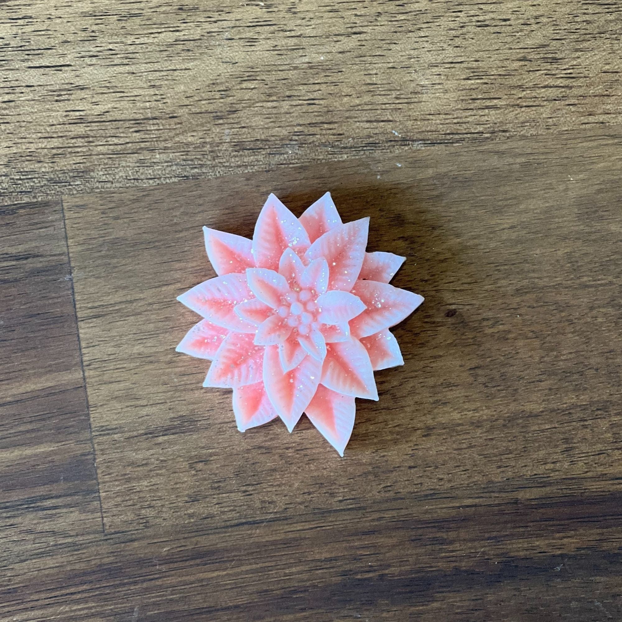 Hand-poured wax melts shaped like poinsettia blossoms in red, green and pink. Beautifully scented with festive Christmas fragrances and designed for use in melt burners.