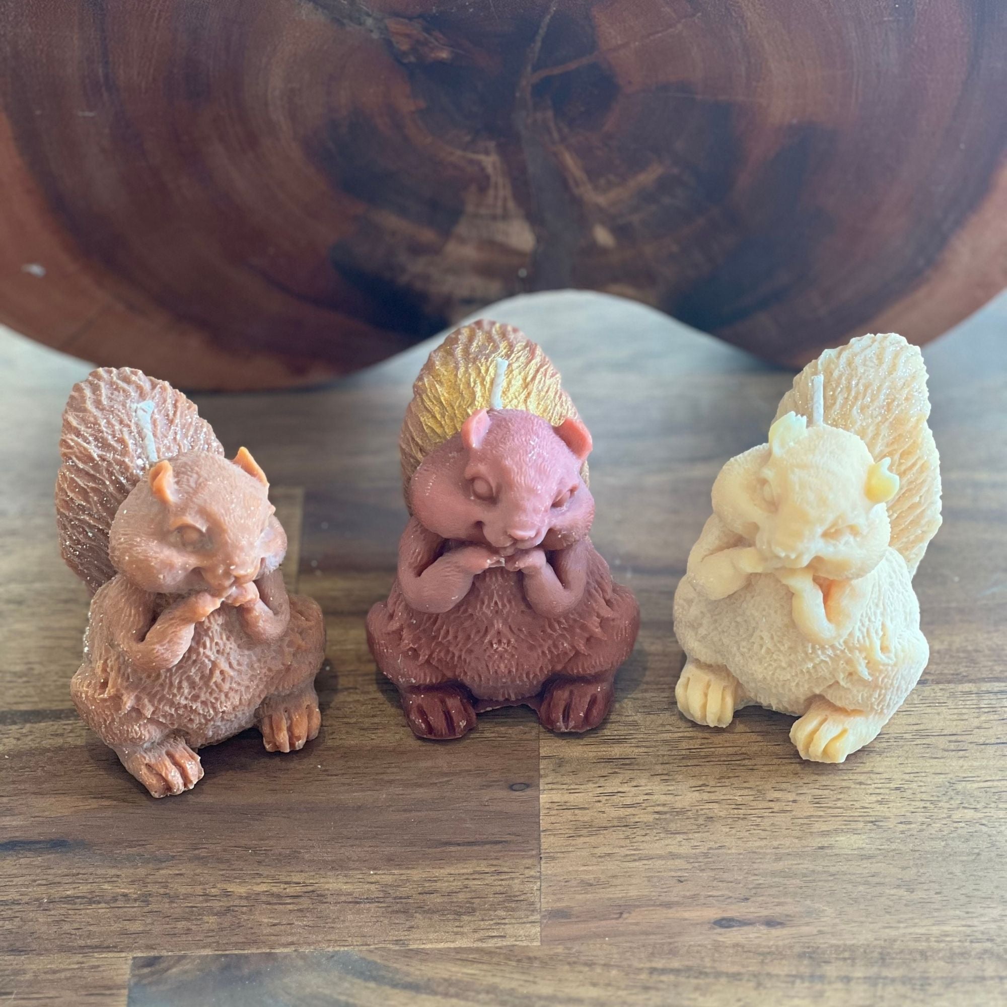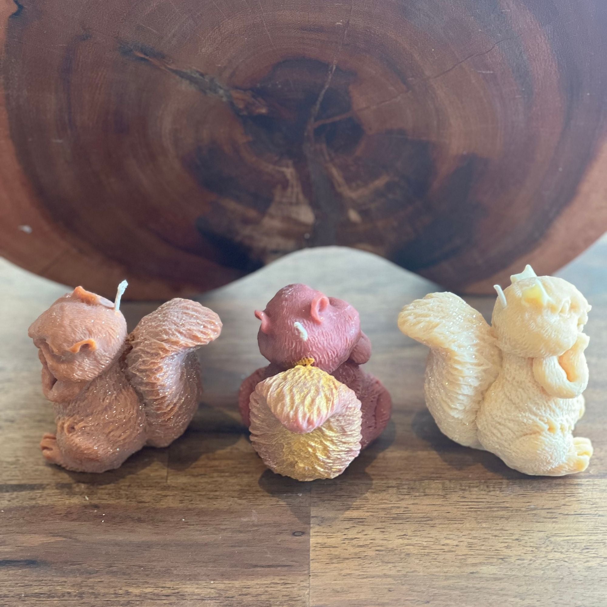 A quiet gatherer, cast in wax. This 6cm squirrel-shaped candle sits alert, tail curled, bringing woodland charm and textured warmth to any space. Perfect for gifting, styling shelves or adding a soft forest accent to your scenes.